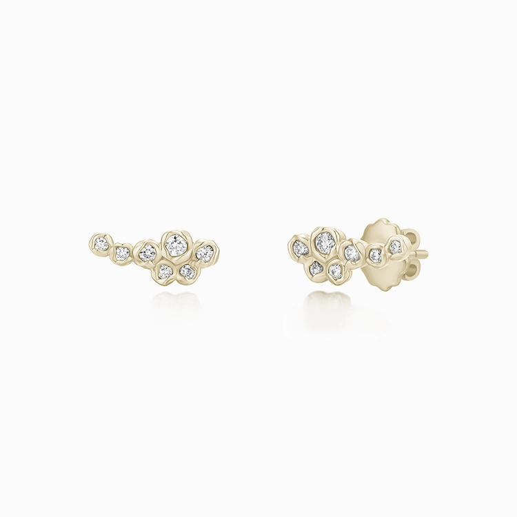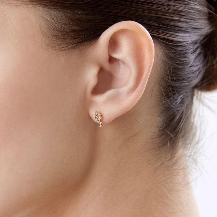 以清新果实为灵感,将娇小而闪耀的宝石演绎为自然意象。错落有致地镶嵌于柔和金色托底之上,