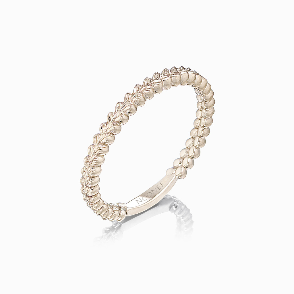 这款来自 Leaf 系列的订婚戒指拥有精雕细琢的月桂叶细节。简约的镶嵌设计巧妙地衬托出戒臂的精美工艺,其百搭且实用的设计能够完美适配任何风格。